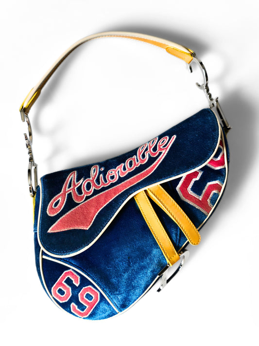 Dior Limited Edition 2003 Adiorable 69 Blue Velvet Saddle Bag