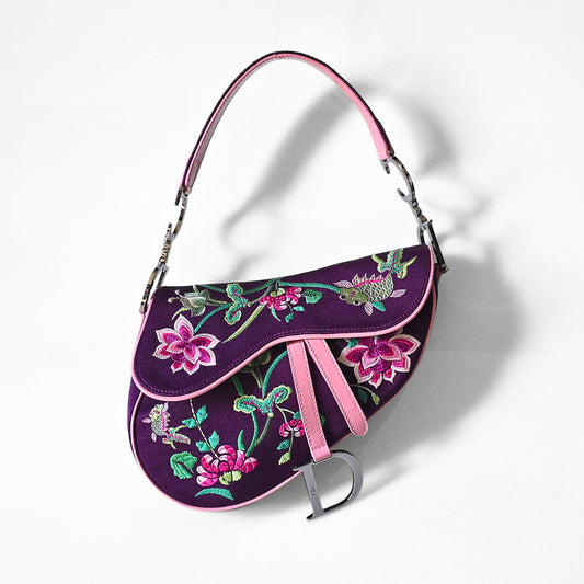 Dior Limited Edition Koi Fish Saddle Bag Purple Satin